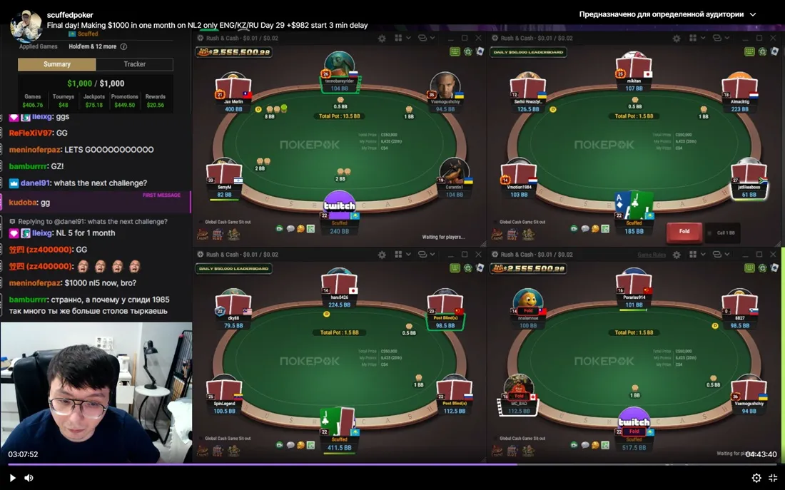 Каждая раздача за кеш столом является отдельной игрой и позволяет уйти из-за стола в любой момент. Это помогает играть в лучших составах и удобное время, а также получать хороший рейкбек.