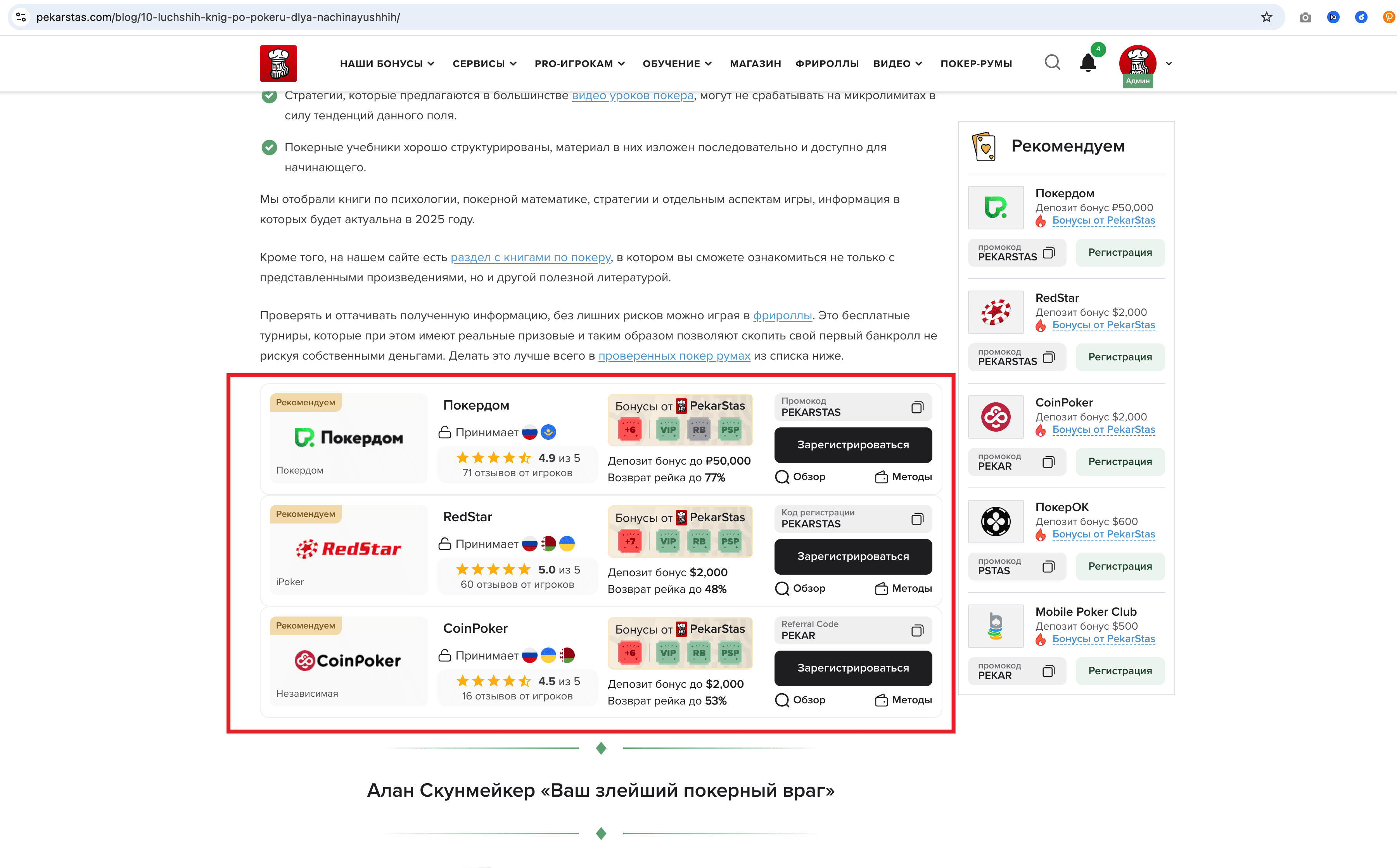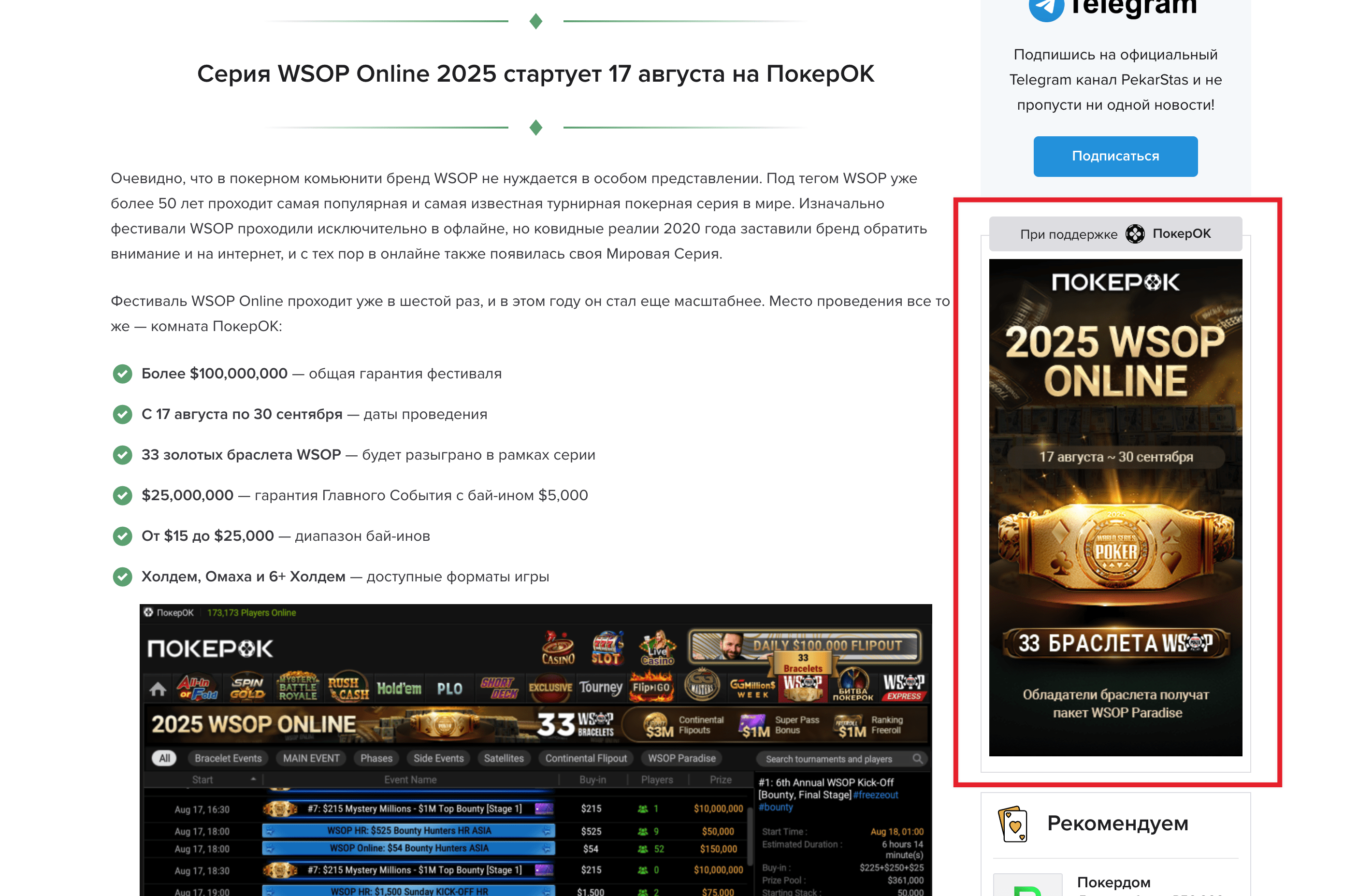 Мы предлагаем гибкие варианты рекламных размещений для обучающий покерных школ и фондов. Предлагаем вам ознакомиться с возможными предложениями по интеграциям, по любым вопросам о согласование и ценам на размещения, свяжитесь с нами по контактам указанным справа, обсудим детали и разместим ваше предложение.