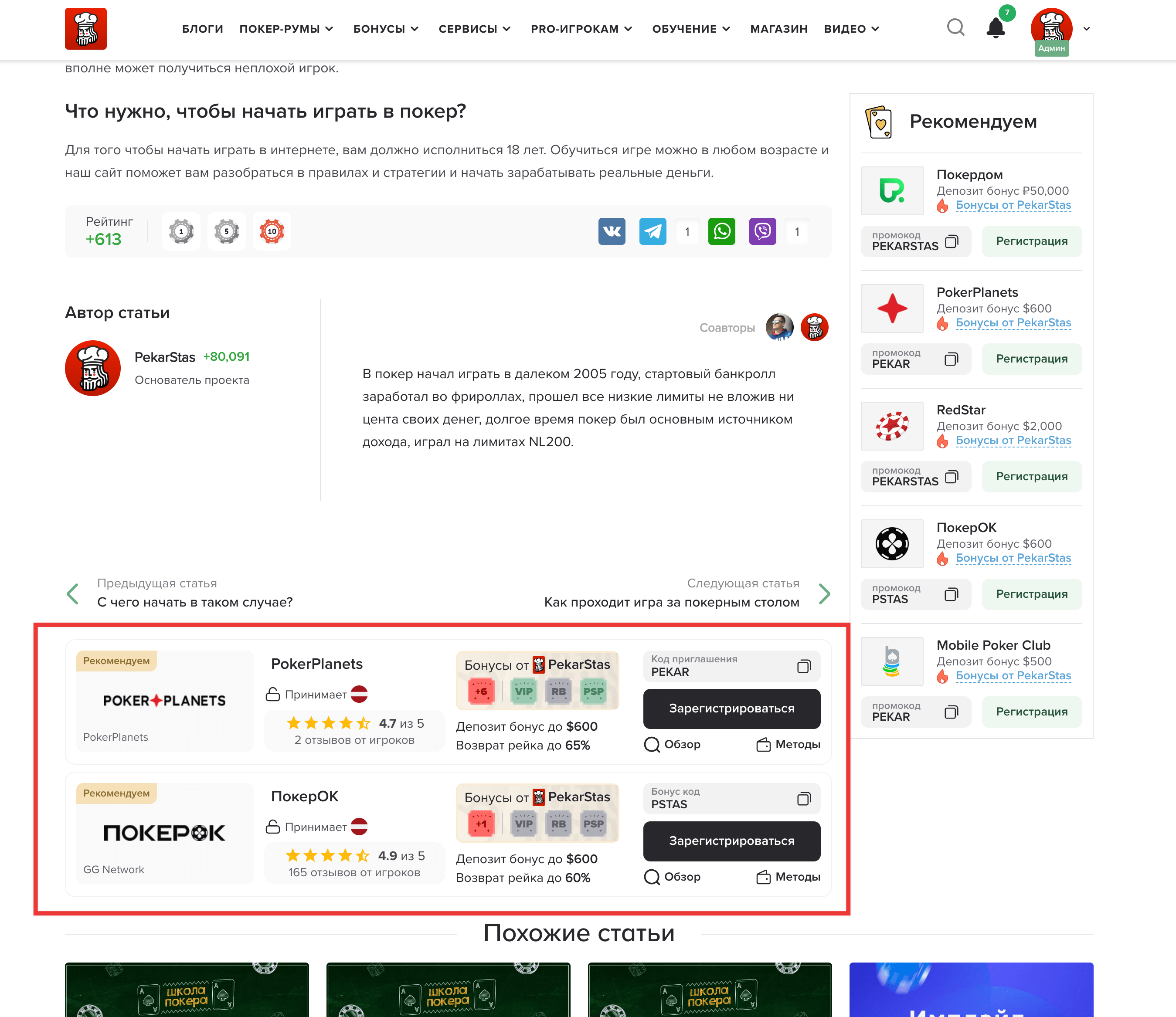 Мы предлагаем гибкие варианты рекламных размещений для покер-румов у нас на сайте, как правило это всегда комплексные решения состоящие из нескольких доступных офферов ниже. Предлагаем вам ознакомиться с возможными предложениями по интеграциям, по любым вопросам о согласование и ценам на размещения, свяжитесь с нами по контактам указанным справа, обсудим детали и разместим ваше предложение.