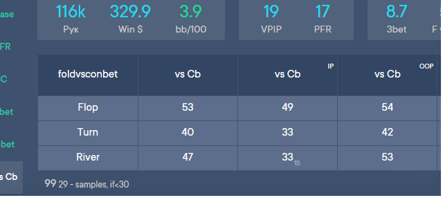 Опп : 3 бет СБ вс БУ 11% , колл 30%,есть агрессия и умеет падать ВТСД 28