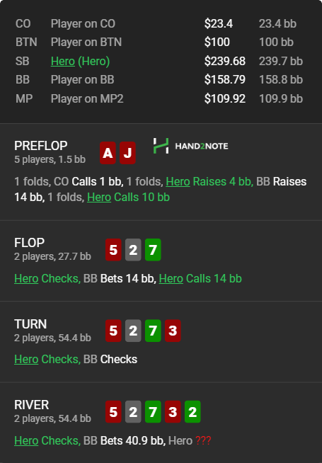 Поэтому фолд является наиболее адекватным решением в такой ситуации.