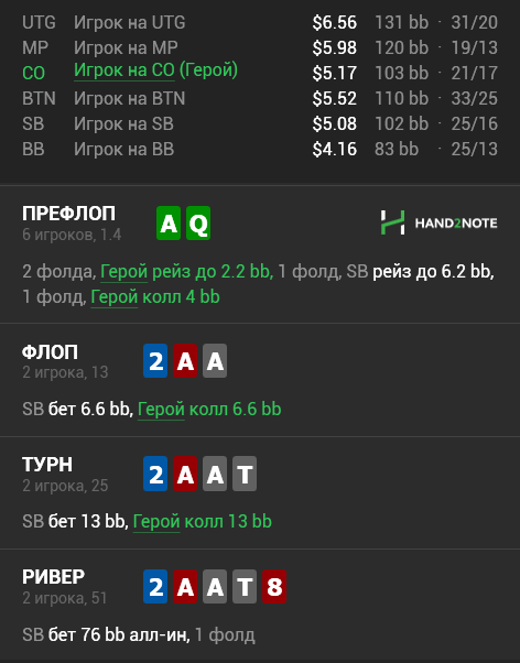 Да и сайз мы бы тут ставили не сильно конский как правило. Нечто в духе 16бб, находясь в позиции. Изначально не указал я в своём разборе сайзинг.