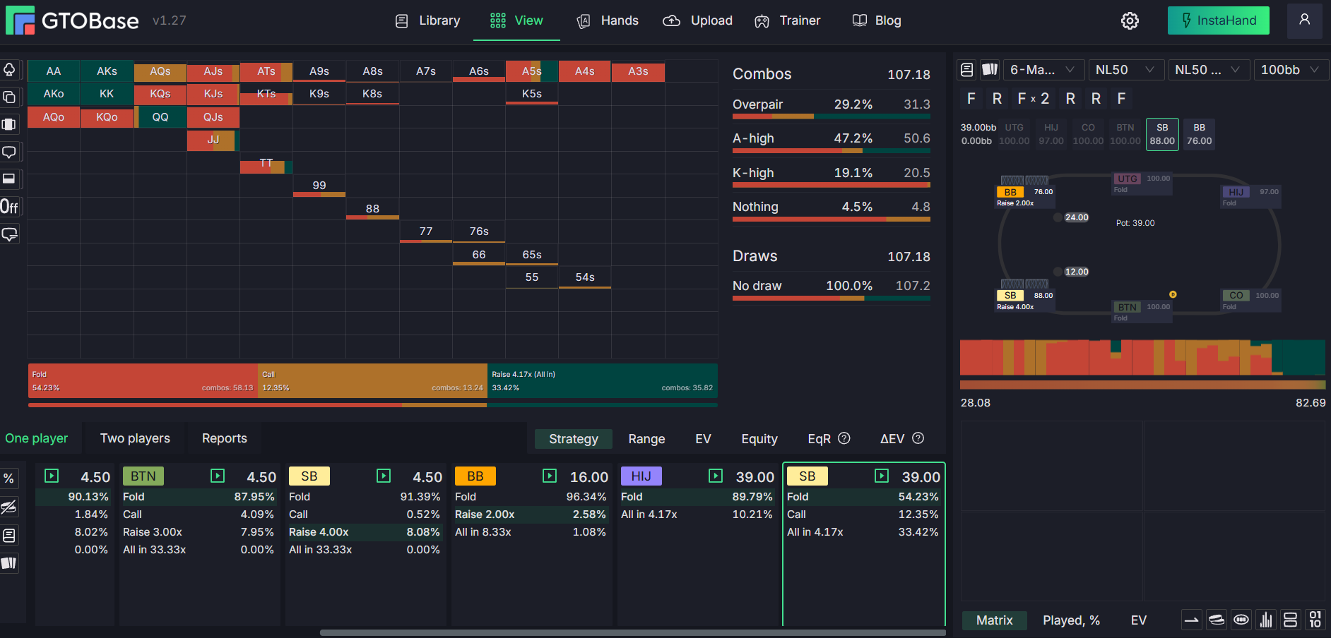 есть опция отбить. Нам достаточно, чтобы у него один раз из трех были блефы. Насчитал 5-8 комб флешей (AQ-AT, иногда A9-A8, JT из-за сайзинга префлопа,QJ-QT )Если он способен иногда превратить в блеф пары JJ-TT с
