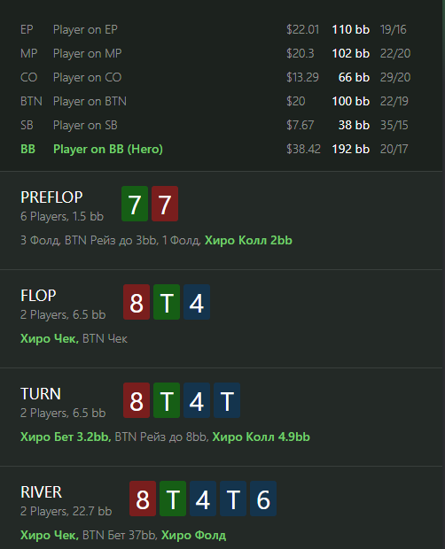 Выходит, что лучше было планировать играть чек-колл две улицы. Был ли смысл переставлять его рейз на терне, если бы заранее видел такие его статы?