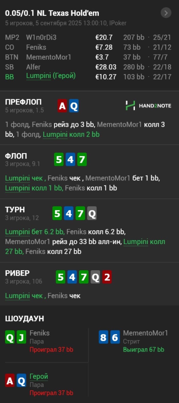Статы нерелевантны на 31 руку. Глубина: 73 бб.