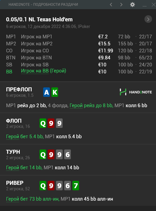 ПРЕФЛОП: 3бет посочнее в районе 9бб!