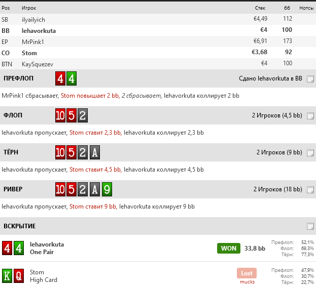 Но, когда фиш ставит 3 барреля, там может быть и Тх и 9х, 77, 66 и 5х руки и все эти руки нас бьют, но проигрывают Тх рукам. А потому, лучше против фиша отколить вторую пару с плохим блокером, чем хорошую 5 пару с хорошим блокером.
