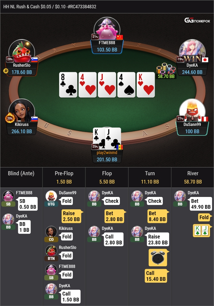 В общем есть 2 типа оппонентов, большинство пассивные и пассивные они относительно ГТО оптимальной игры, такие соперники рейзят на терне не достаточно часто и с нашей стороны подстройка под таких соперников, это оверфолд. Т.к. таких соперников на микролимитах большинство, то мы изначально оверфолдим против неизвестного и только после подстраиваемся под агрессию соперника. По умолчанию это фолд терн и забыли, но если мы знаем что наш соперник агрессивный и рейзит близко к оптимальному, то это будет колл и колл благоприятного ривера и точно это не будет 3 бет или пуш как писал Пирдун, так блефкетчеры не разыгрываются. 3 бетить мы должны полярно, на велью и в блеф, эта же рука к полярной стратегии не относится, если у нас не будет ФЭ на 3 бет, допустим соперник пассивный и рейзит терн с сильным уклоном на велью, тогда мы 3 бетим линейно на велью и такая рука туда так же не попадет, с этой рукой всегда или колл или фолд.