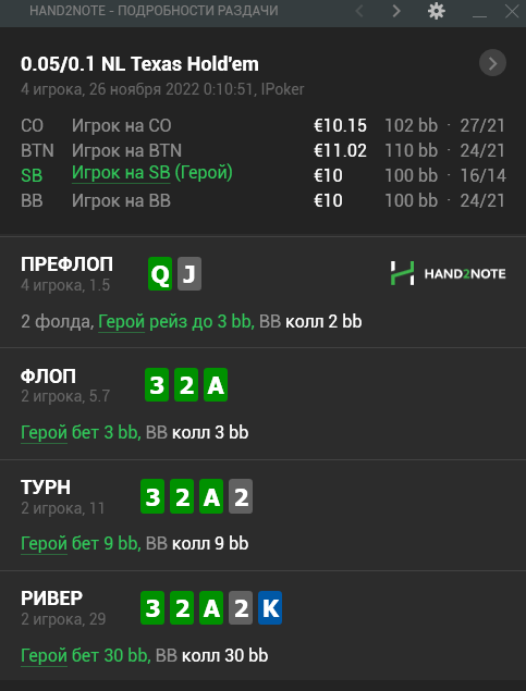 BBvsSB 4bet pot. Стоит ли превращать 4ую пару по терну в блеф?