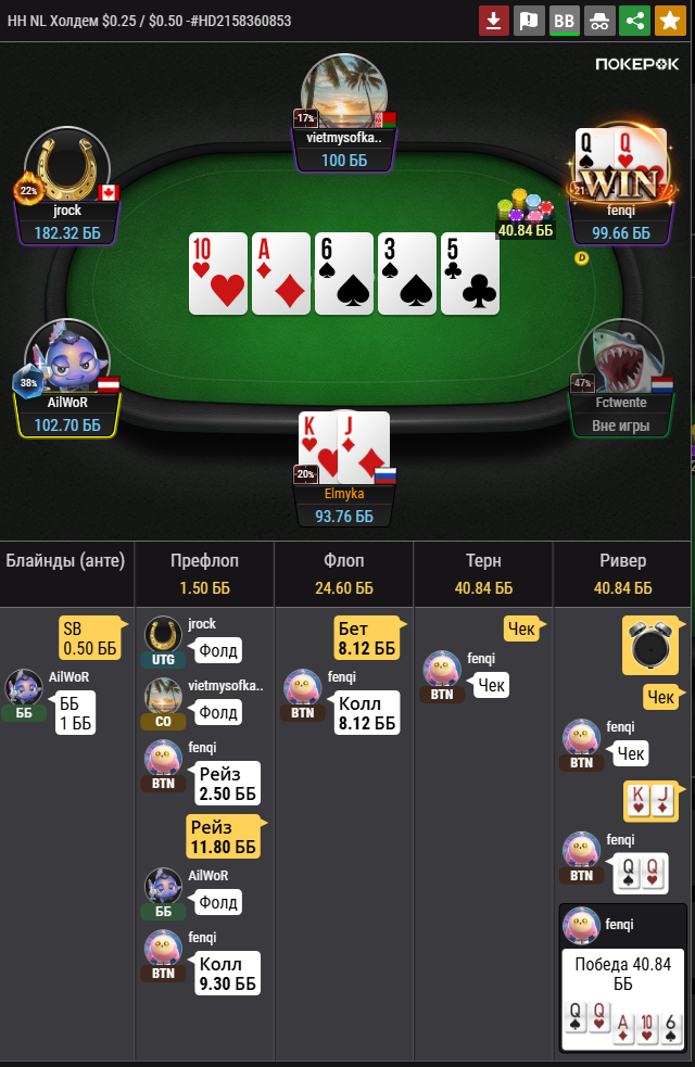 На днях в солвере была такая текстура и в ривере у него с большой частотой овербеты в пуше , но в моменте подумал что очень блефово и Ах могут отбить, по кривой линии, но сейчас склоняюсь, что даже AJ могу выбить.
