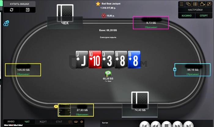 ББ чек, Хиро рейз 13,88бб, ББ колл. Банк 68,28бб.