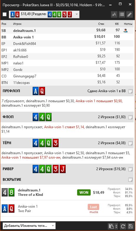 ЧР в 1 раз рейженном поте - Флоп 1 из 16, терн 1 из 7. Один раз дошел до вскрытия после сек рейза и выиграл.