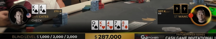 На ривере действительно решение почти близкое , вопрос в том , зачем вообще 4бетить K6c на 7мой позиции против 3бета с катоффа от фиша ? Кто-то может мне обьяснить, в чем смысл этого блефа в фиша ? Может кто шарит и этот ST WANG не фиш вовсе , но это врядли.