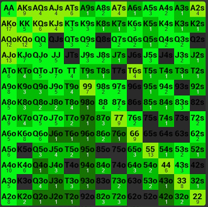 JJ+,AKo,AKS. В предыдущем посту правильно заметили, что всё от фиша зависит, в неизвестного думаю будет норм диап. который я предложил. У AKo, мне кажется будет достаточно ев, но ближе к краешку.