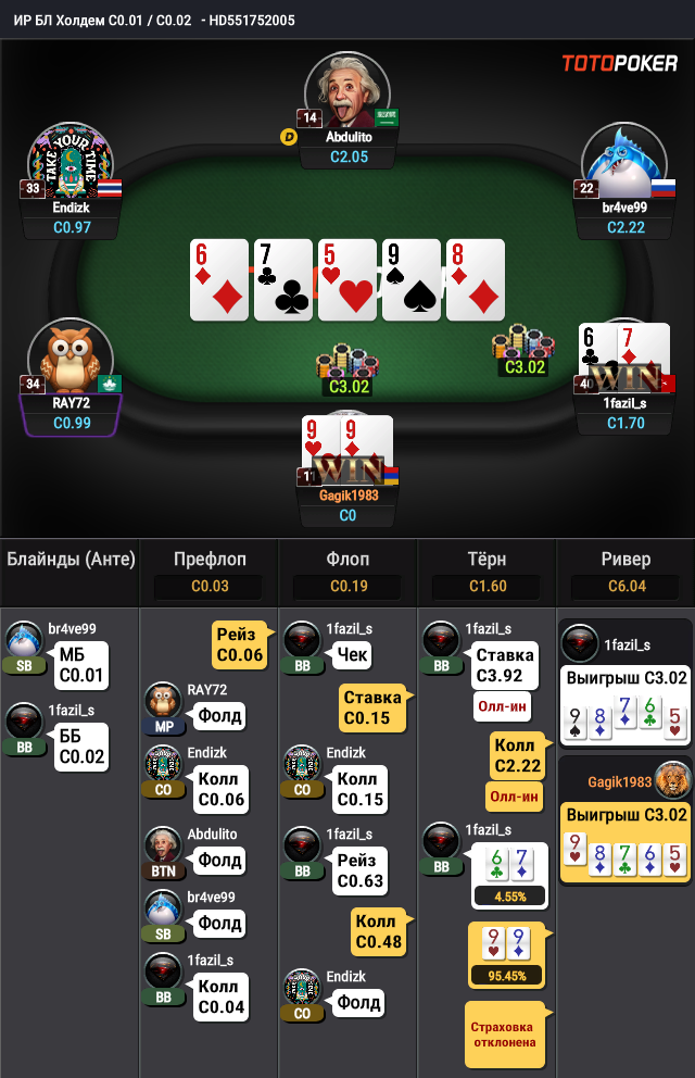P.S. замазывай руку соперника на вскрытии, когда выкладываешь раздачу.