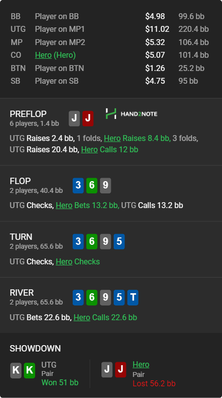 А чтобы не гадать на кофейной гуще именно против этого оппонента с нашей рукой, стоило прочекать флоп, сделать лёгкий колл тёрна и скорее всего ривера. Так как такие ребята любят предпринимать попытки продавливания оппонента. И играть с такими достаточно просто и понятно если подстраиваться.