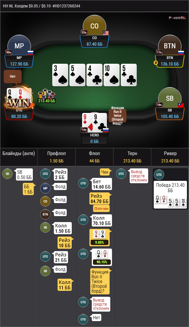 Сквиз на префлопе смотрится неплохо,но в руме гг,лучше играть кол,т.к рейк мы всё равно заплатим сквизом.