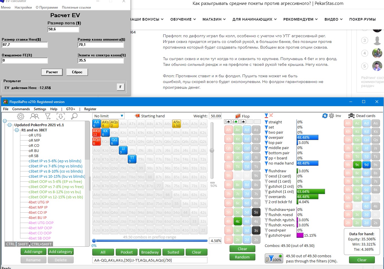 Есть ли кол?Кол по шб есть,но проблема в том,что делать дальше?Выйдет бланковая карта на терне и оп пушит,то как играть?Вроде как придётся колить,т.к он может так сыграть Ах,но будет ли он их так разыгрывать и в каком проценте?