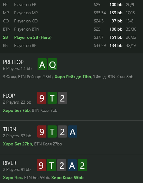 Опп. неизвестный 35/30 (69рук) 1. Как стоило сыграть на Терне? 2. Какой у него диап. колла на Терне? 3. Как стоило сыграть на Ривере? 4. Есть ли у него блеф по такой линии?