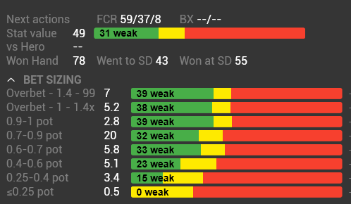 Да вы наверное прикалываетесь, какой фолд, о чем вы? На картинке алиаз регуляров этих лимитов, который показывает, что hero не должен тут бить никакого велью оппа, т.к. у среднего рега будет хватать блефов по такой линии - изи колл.