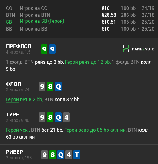Префлоп и флоп мне кажется стандартными решениями, а вот на терне большинство игроков совершенно не использует чек с сетами и вопрос почему и зачем нам нужно так играть?