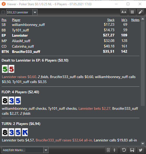 Ты же заизолировал себя против диапазона который я указал выше, но на тёрне, когда фд закрылись, а 88 уже не хотят колоть, ты продолжил крупно добирать. По твоей линии по тёрну у нас только чек/колл по ШБ/имплайдам на фулл