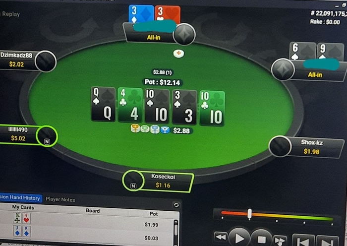Оппонент прилично трибетит в позициях СБ И ББ против БАТОНА у меня 33 и так как стеки глубокие заколлила . на флопе смутила ставка 1/4 .Доска достаточно скоординирована поэтому заколлила . терн 3 и флеш закрылся . он чек я 1/2 он рейз и тут ступор. 3-бетил ли бы он так прилично с натсовым флешом ? (хотя разогнать банк) ведь руки хуже упадут .и Сет наверное сам бы ставил на терне . короче в коллила .и фул и ривер наверное надо было на пуш выбрасывать но ......