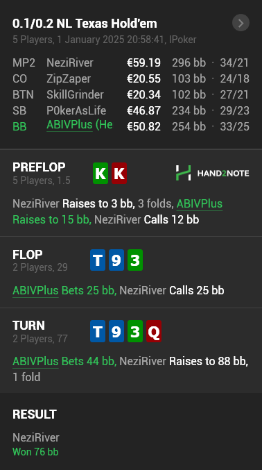На флопе доска уже парфужная. Ставить откровенно расхотелось, а на двойной+ колл в моменте не хватило духа. - Да и вряд ли бы хватило у 9 читателей из 10. - Поэтому, как говорится, велью-беттинг по своей цене, а там "посмотрим".