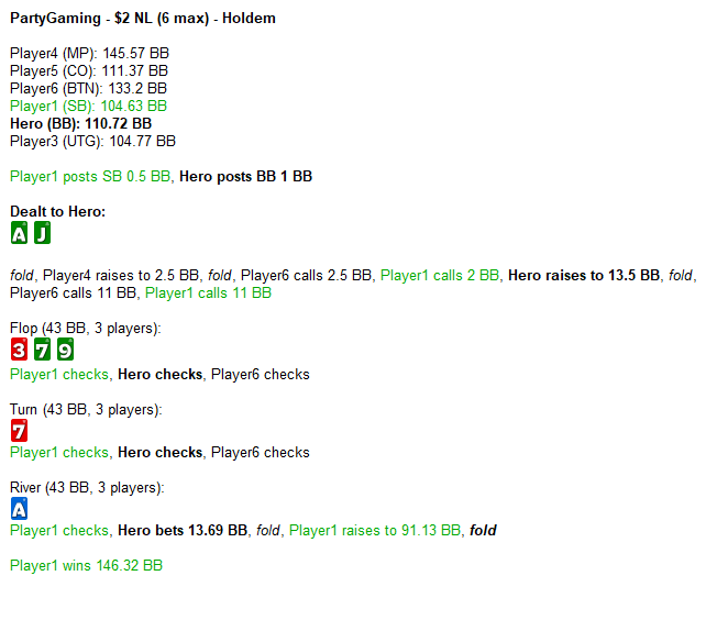 Как сыграно, на терне нашу руку можно прочекать, можно поставить. Условные АКс в масть, если бы оказались по такой линии, скорее бы проставил; АВс можно чекнуть. Преимущество ставки в том, что мы вельюбетим все красные фд, а также по-прежнему выбиваем какое-то случайное эквити.