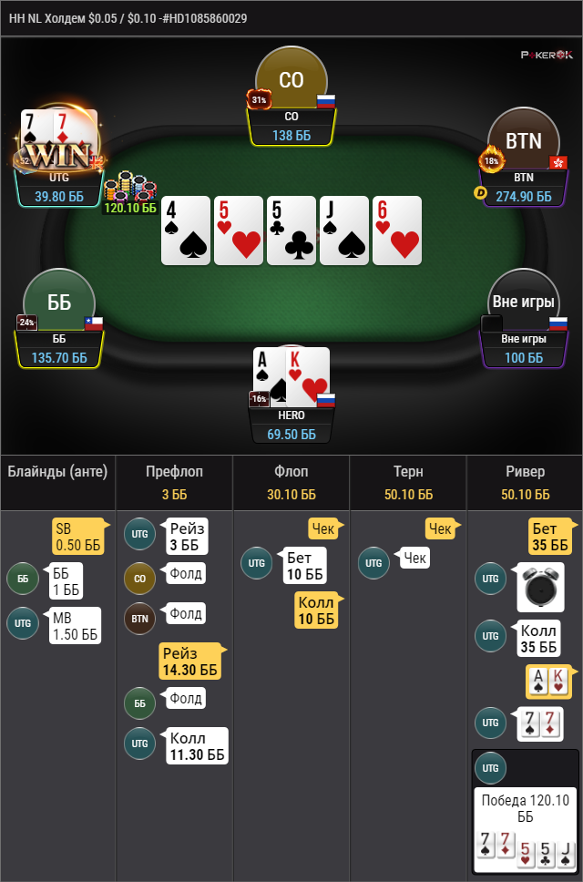 Итого мы получим велью со всех непарных рук и часто реализуем наше эквити против рук сильнее