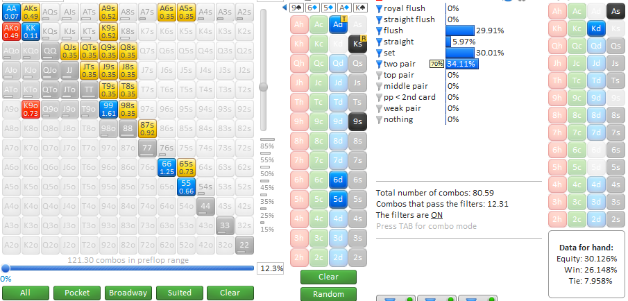 P.S на флопе и тёрне я обрезал некоторую часть сильных рук, сетов, оверпар и флешей/стритов по тёрну. Что какие-то из них он будет рейзить