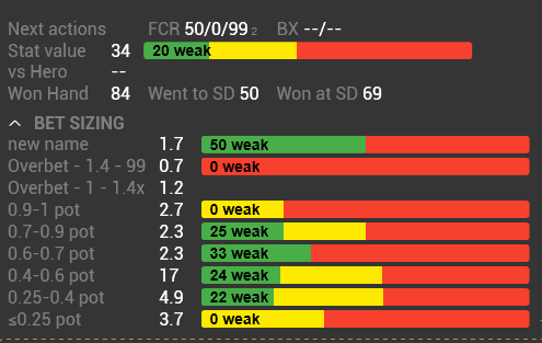 Просто по статистики агрессия у противника низкая, низкий ввсф, наврятли ведь такой противник будет превращать в блеф низкие пары и даже далеко не всегда Qx. То есть это должны быть какие то фд руки которые не блефовали терн, или бэкдоры, но их тоже не так что бы много, все же противник умеет фолдить на контбеты.