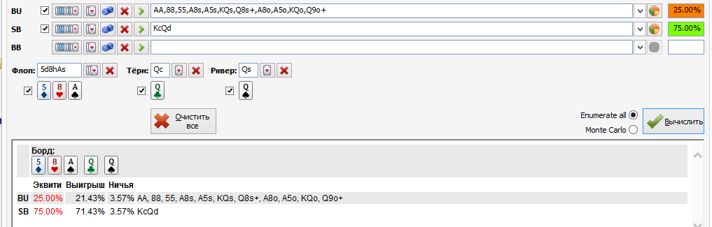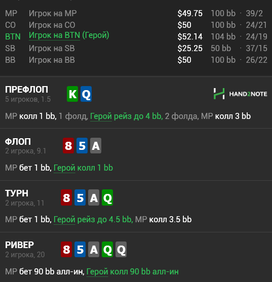 Проблема в том, что у него даже aq есть в лимпе с таким пфр, без нотсов что он способен трипс так переиграть без кикера я бы не колировал. В банке не так много денег и рисковать 90бб ради 10бб смысла не вижу.