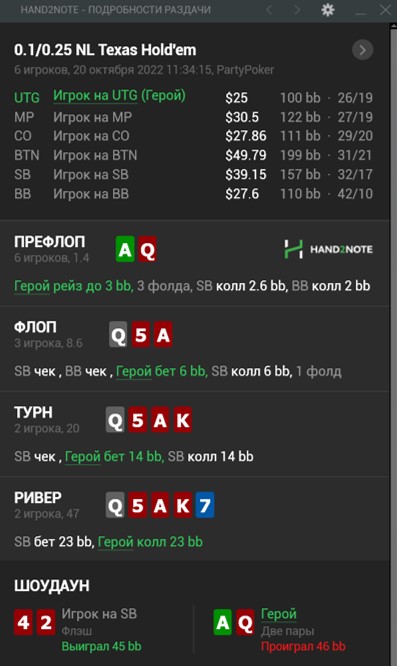 да, нужно коллировать, даже если опп пассивный, т.к. даже у них в таких ставках хватает рук, которые ты бьешь и свои 25% эквити ты будешь иметь
