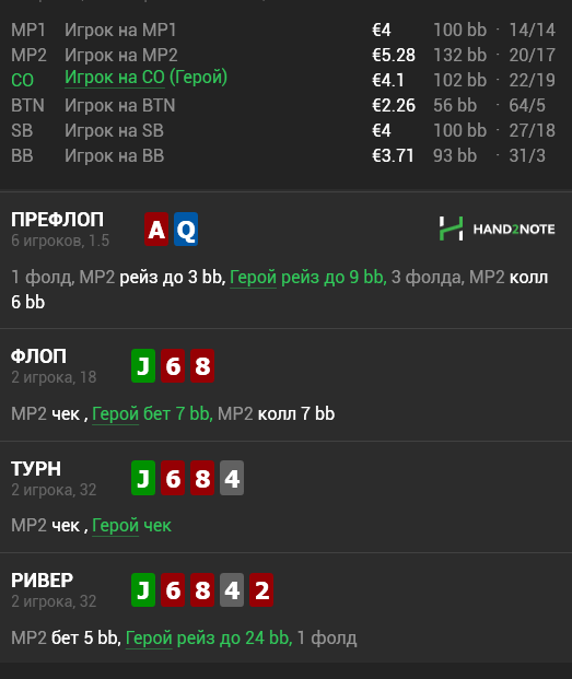 И кто играет против тебя мы понятия не имеем, так что тут или просто фолд и забыли, играем дальше или рейз и делаем метку, что он играл бет/фолд на ривере андербетом. Но понадобится куча таких заметок, прежде чем мы сможем окончательно определиться как играть против его андербетов. Или другой вариант, качаем майнинг или наигрываем руки сами, а делее через свою базу анализируем поле, как часто ставит и как часто после отваливается и играем против мало известных оппонентов как против поля, пока не поймем, что его игра отличается.