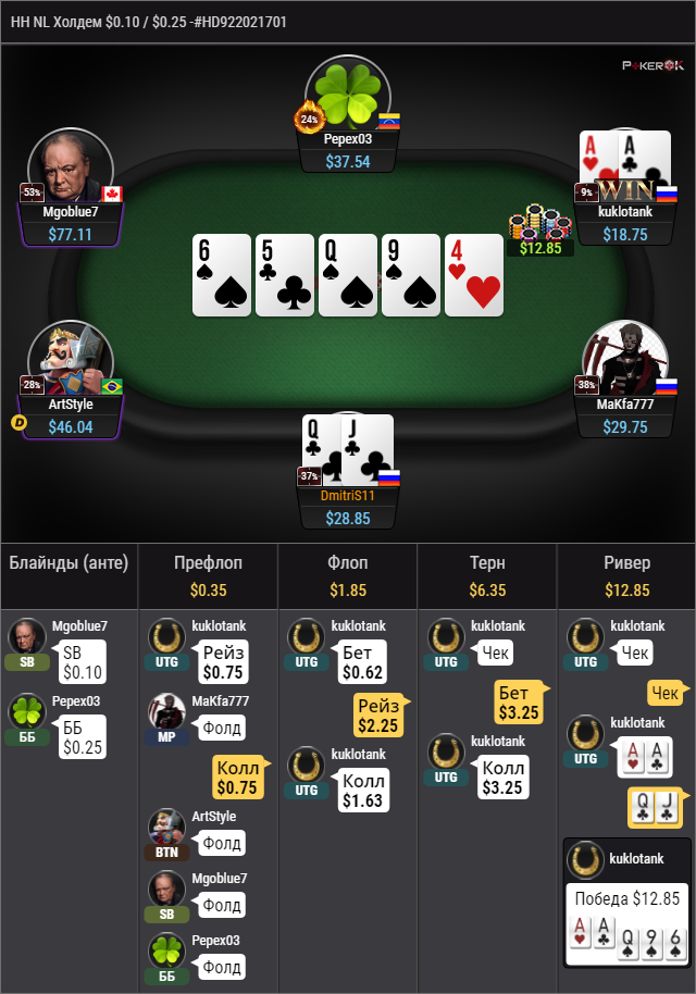 Розыгрыш же элементарный: колл, колл, думаем, но чаще всего фолд