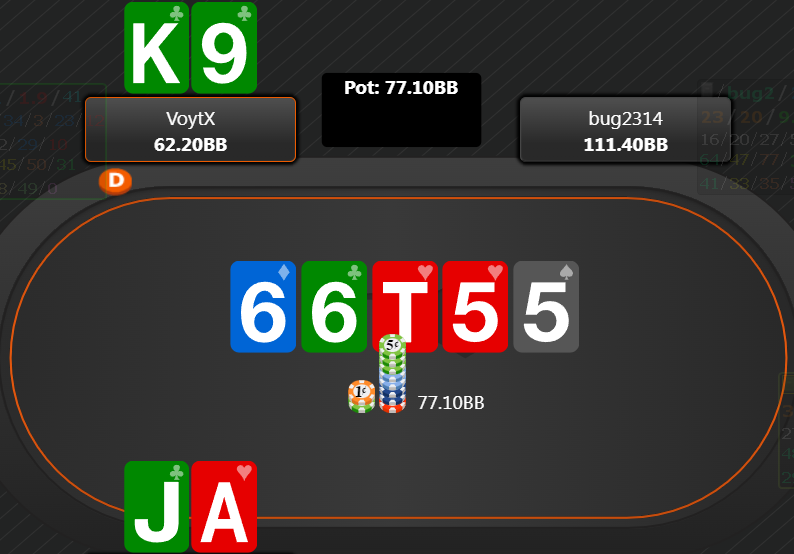 Флоп: Если он агрессивный у тебя хороший блефкетч с