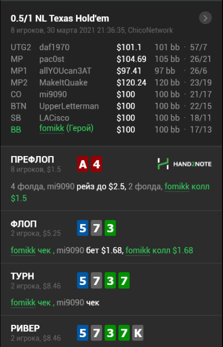 Как вы считаете, как нам оптимально сыграть флоп и ривер против такого оппонента? В чём ошибка хиро? Какие здесь есть неочевидные варианты розыгрыша нашей руки?