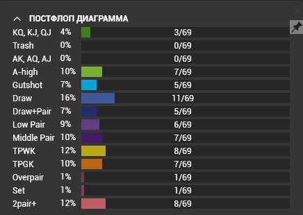 3. На флопе оп чекнул и это или слойплей, или контроль банка. След ставка есть, но чтоб тебе платили все Ах, QTs, JTs размер следует брать поменьше. Ты и сам не будешь тут рад выставляться, так что сайзинг след уменьшить.