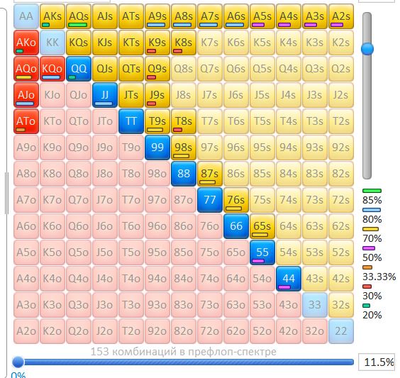 Обрезаю верх спектра с которым опп бы играл 4 бет, и его рендж теперь таков -