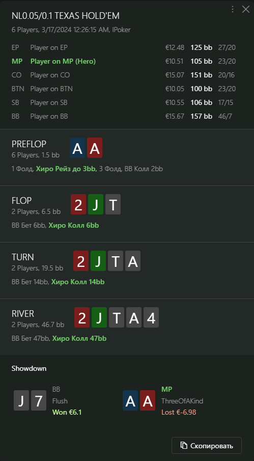 Опп пассивный любитель, 45\6. флоп вижу диапазон ТП+ в его донке, по терну полагаю это Допер+ и ТП+ ГШ, можно пушить терн думаю, но пуш отожился на бланковый ривер, по риверу уже не вижу пуша, есть ли колл?