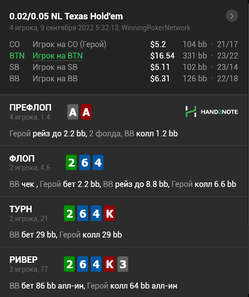ТЁРН: ФОЛД! Нет смысла продолжать. Дело в том, что руки по типу оверпары к флопу притормозят на тёрне, а следовательно его велью часть диапазона бьёт тебя в щепки. Да. там есть некоторые