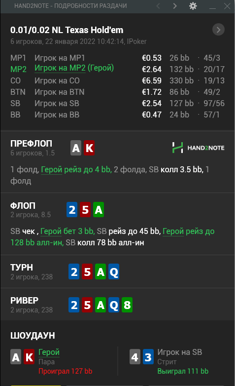 ПРЕФЛОП: Когда за нами сидят 2 фиша, BU 49/2, а так же китяра на СБ 97/56, то открывать стоит хотя бы 5-6бб и это будет отличной игрой, но диапазоны будут видоизменяться по процентовке и наполнению. Мы хотим снизить СПР, чтобы чаще стекать оппонентов. 4 бб так же хорошо!