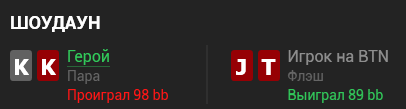 На пуш оппонента это однозначный фолд, хоть одсы и манят колоть и есть ощущение что мы привязаны к банку. На самом деле мы ни к чему не привязаны, так как наполнение 4бетпуша это строго велью и мощнейшее, которое бьёт нас в щепки и наша рука не имеет до ривера даже близко необходимые 26% эквити против такого хода раздачи.