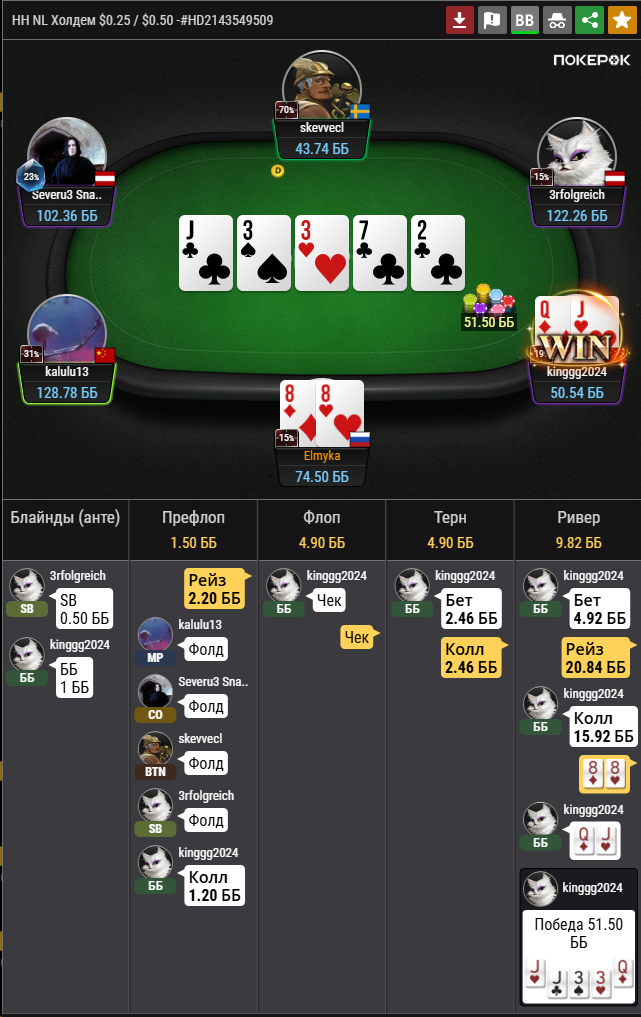 Вот вариант с рейзом на турне действительно имеет место, только совет делать сайзинг х3 так себе, т.к. когда-то он нужен будет и х4, а когда-то и х2 хватит, и зависит это от сайзинга оппа.