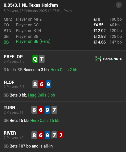 Фолд? Надеется на сплит здесь не стоит наверное? Допера / сеты так никогда не будут играть, Тх тоже скорее будет играть аккуратно добирая на тонкую.