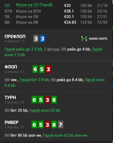 По рейзам непонятно, ситуаций было мало. На время раздачи на противника было 60 рук.