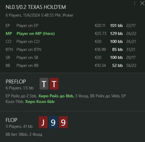 , но и они будут иметь не малое эквити на переезд нас. Шансы же около 33%(с учётом рейка). И наша рука будет несколько позади шансов.