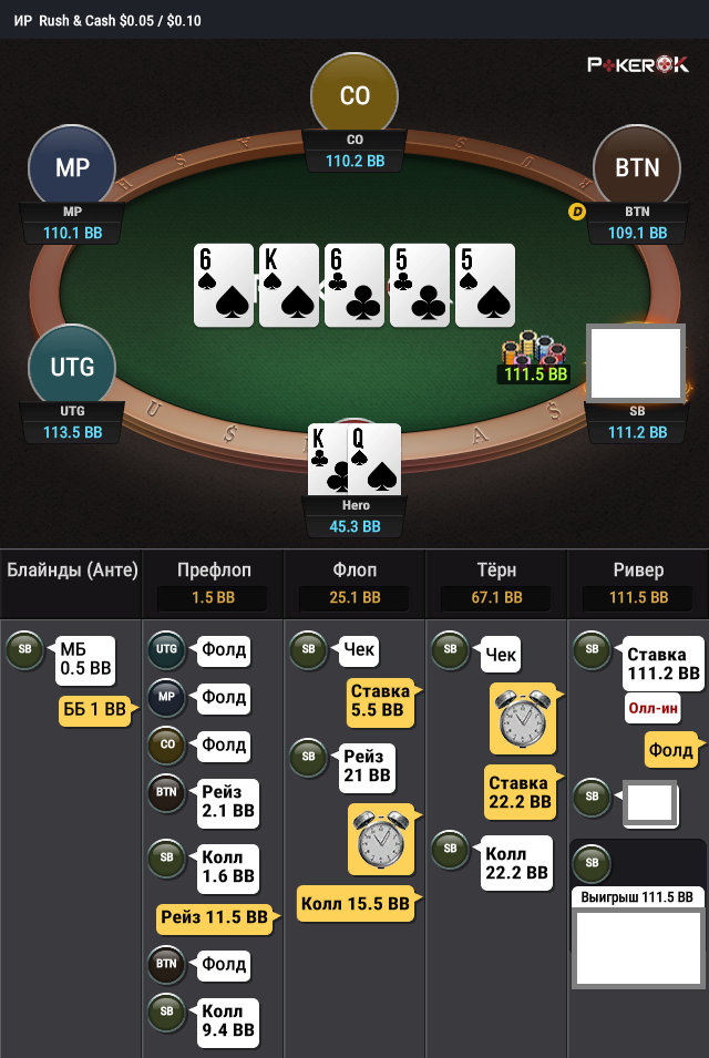 РИВЕР: Думаю, тут блефы будут почти никогда, поэтому фолд.