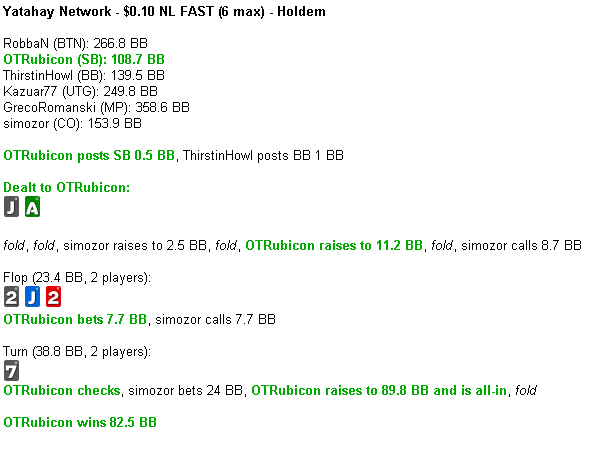 Если же он более пасивный и телефонистый, то лучше продолжать ставить в 1/2 турн и ривер, уже смотреть по ранауту. Так как он врятле будет ставить с Jx, FD, 99-88, а поставит только то что сильнее, а вот вколить все перечисленное еще раз может не на очень крупный сайз.